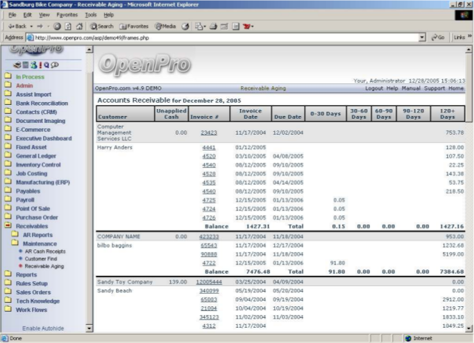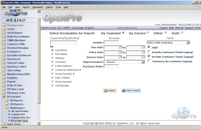 The Receivable Aging selection enables you to view details of an invoice as well as print a report showing all items in the A/R Open Item File. The Aged Open Items Report shows the age of invoices as of a particular date that you specify (called the aging date).