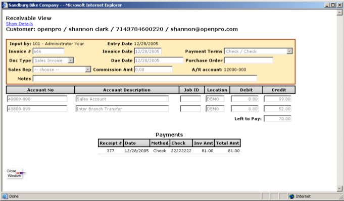 From this window you are able to click on the invoice number to the right of the customer name and view the details of that item.