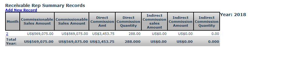The Commissions Sum Report Screen is a report/summary of the sum of commissions for all the account receivables by year.