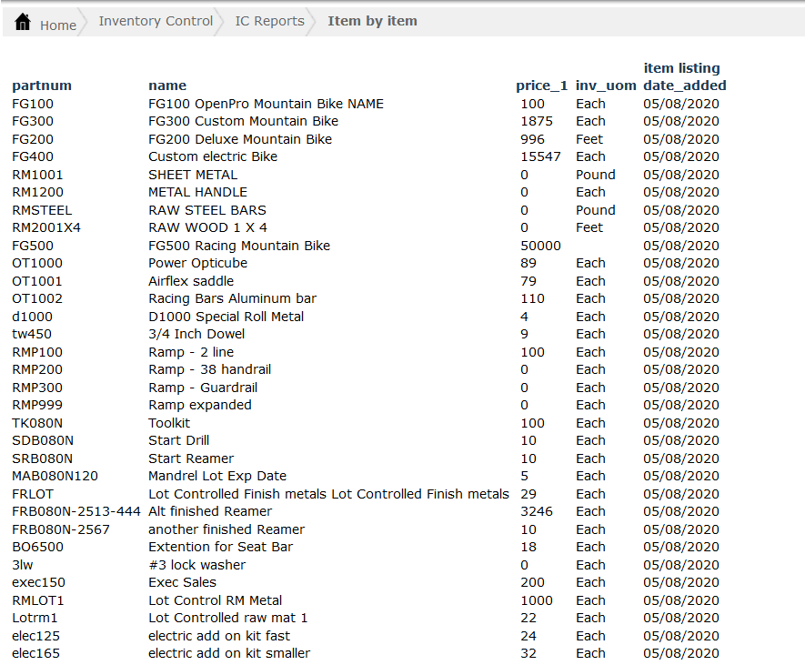 These are used to list our your inventory items and review the prices setup for the items and more details.