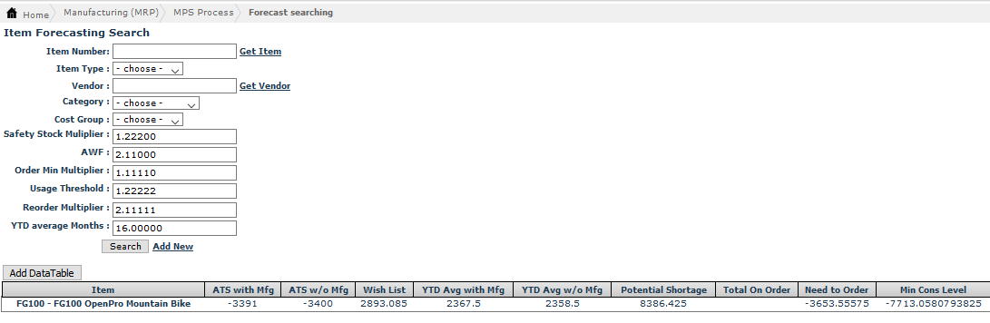 The Master Production Scheduling (MPS) Forecast Searching screen helps in projecting manufacturing throughput, resource requirements, revenues and profitability. This helps in establishing the inventory and supplies needed to meet manufacturing demands.This forecast helps in quantifying significant processes, parts, and other resources in order to optimize manufacturing.