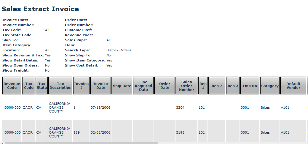The History Sales Invoice extract report allows you to view all invoices associated with sales made within a specific during based on your set parameters.