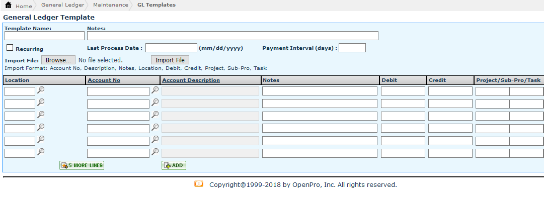 The Browse button allows you to look for a GL Template from another location and import through the Import functionality.
