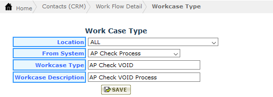 The Copy link in CRM workflows allow you to enter details on a workflow. Details include Location, related system, the workcase Type and Workcase Description.