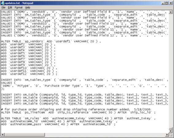 - Review the SQL updates; the latest updates are located on the bottom of the file.