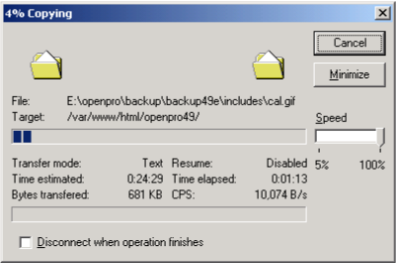 3. Then overlay the programs with the latest programs by using winscp or whatever local program you use to connect to the server. Or if you are on the server just extract the zip file and overlay the OpenPro root folder.